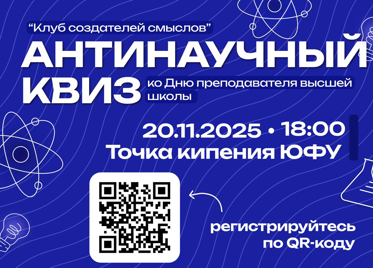 19 ноября в нашей стране отмечается День преподавателя высшей школы! Именно преподаватели формируют будущее, вкладывая свои знания, опыт и сердечное тепло в каждого студента. Мы решили порадовать их и провести антинаучное мероприятие, которое объединит и преподавателей, и сотрудников, и студентов Южного федерального университета.
